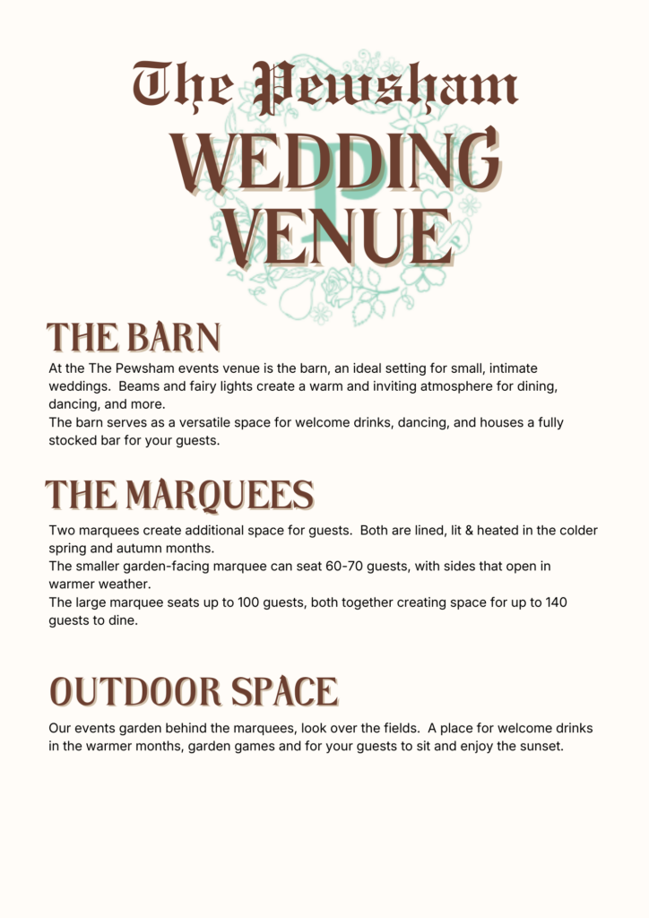 The Pewsham has a beautiful wedding and events barn, with a large marquee and garden.
