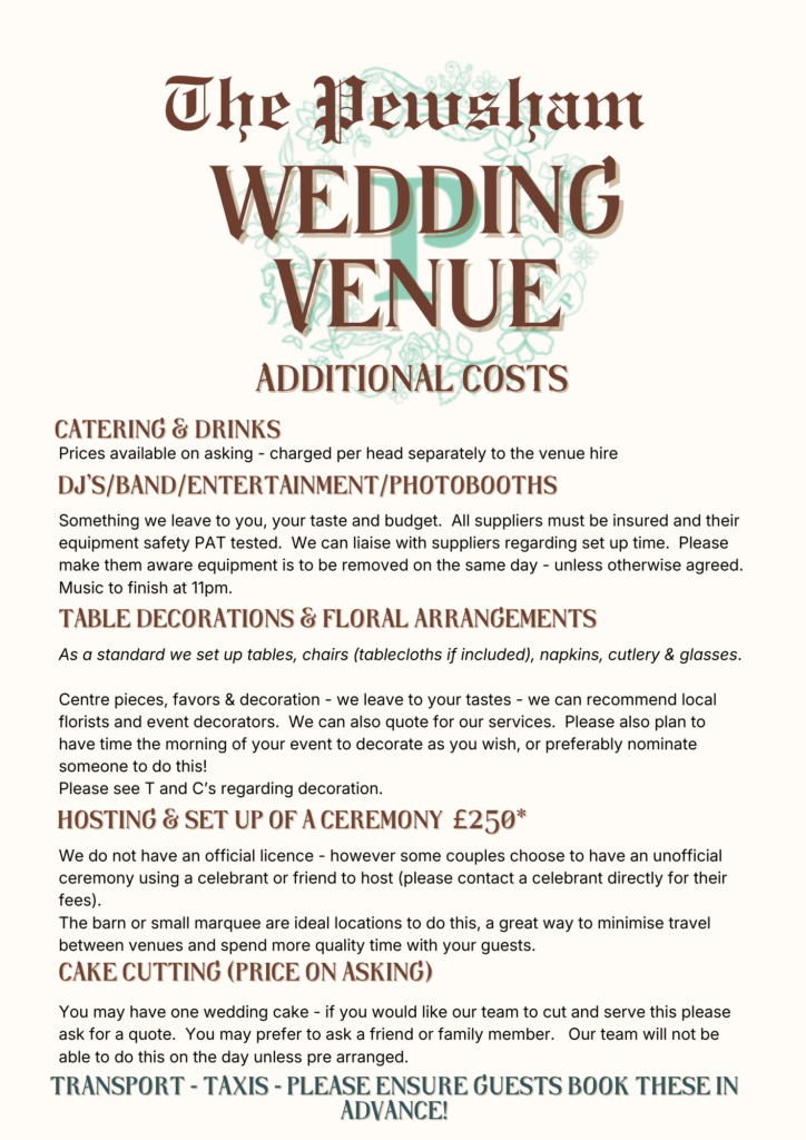 Please get in touch if you would like to visit our venue or discuss holding your wedding at The Pewsham
